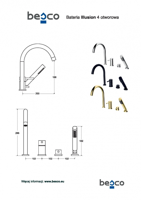 4 - otvorová vanová baterie série ILLUSION je pro zákazníky, kteří chtějí pohodlné, elegantní a přitom jednoduché řešení se zaobleným designem. Vanová baterie má minimum detailů, což produkt výrazně odlehčuje.