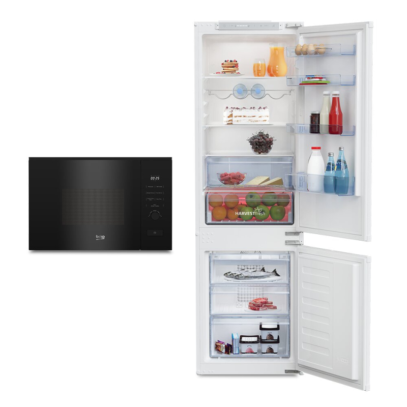 Akční set spotřebičů Beko - vestavná kombinovaná chladnička BCHA275E4SN + mikrovlnná trouba BMGB20212B