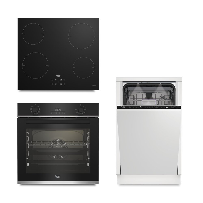 Akční set spotřebičů Beko - vestavná trouba BBIR13300XC + indukční varná deska HII64401QT + myčka BDIS38040A