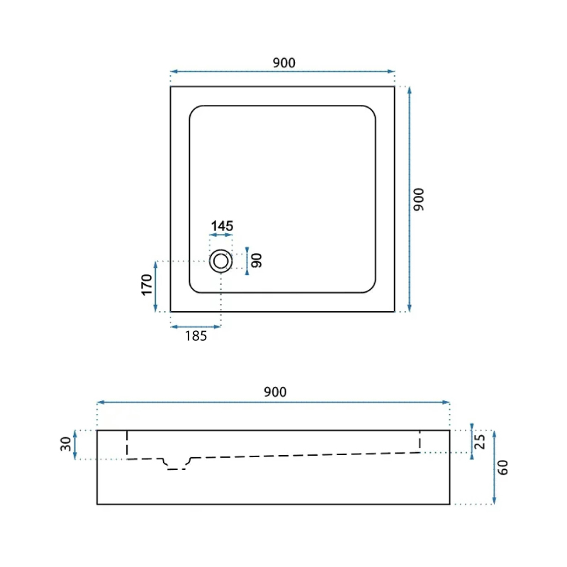REA Akrylátová sprchová vanička Savoy černá 90x90 KPL-04803