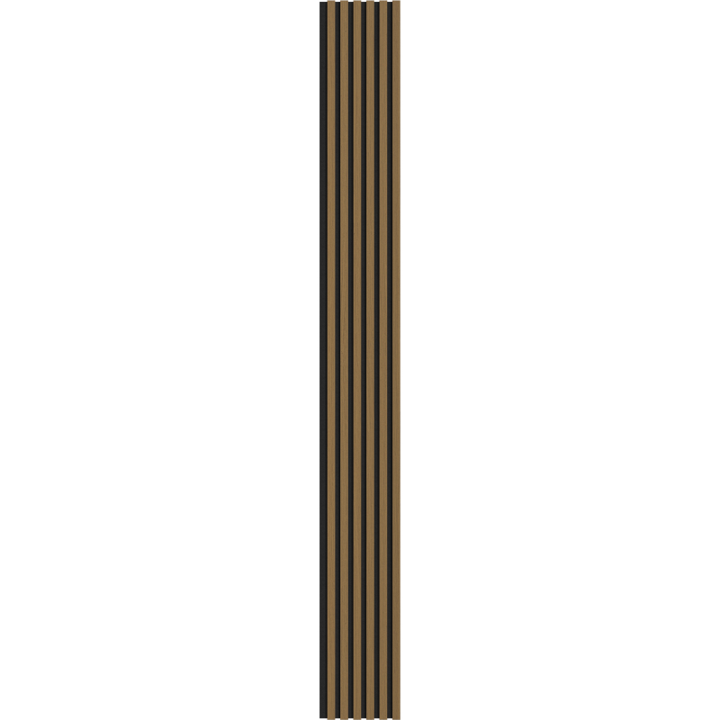 Specifikace produktu: Délka: 275 cm Šířka: 30 cm Tloušťka: 2,3 cm Tloušťka podstavce: 8 mm Tloušťka jedné lamely: 15 mm Šířka jedné lamely: 30 mm Rozteč mezi lamelami: 20 mm Počet lamel: 6 Materiál lamel: MDF páska + technická dýha Podkladový materiál: Plsť Konstrukce lamel: Teak Odstín lamel: Přírodní Barva podkladové vrstvy: Černá Způsob montáže: Lepením nebo šrouby Obsahuje materiály zpomalující hoření Mají akustické a zvukově izolační vlastnosti, které účinně snižují nežádoucí zvuky