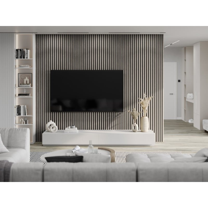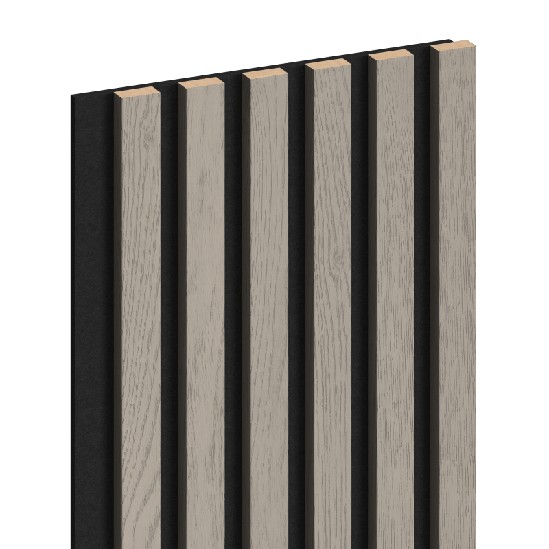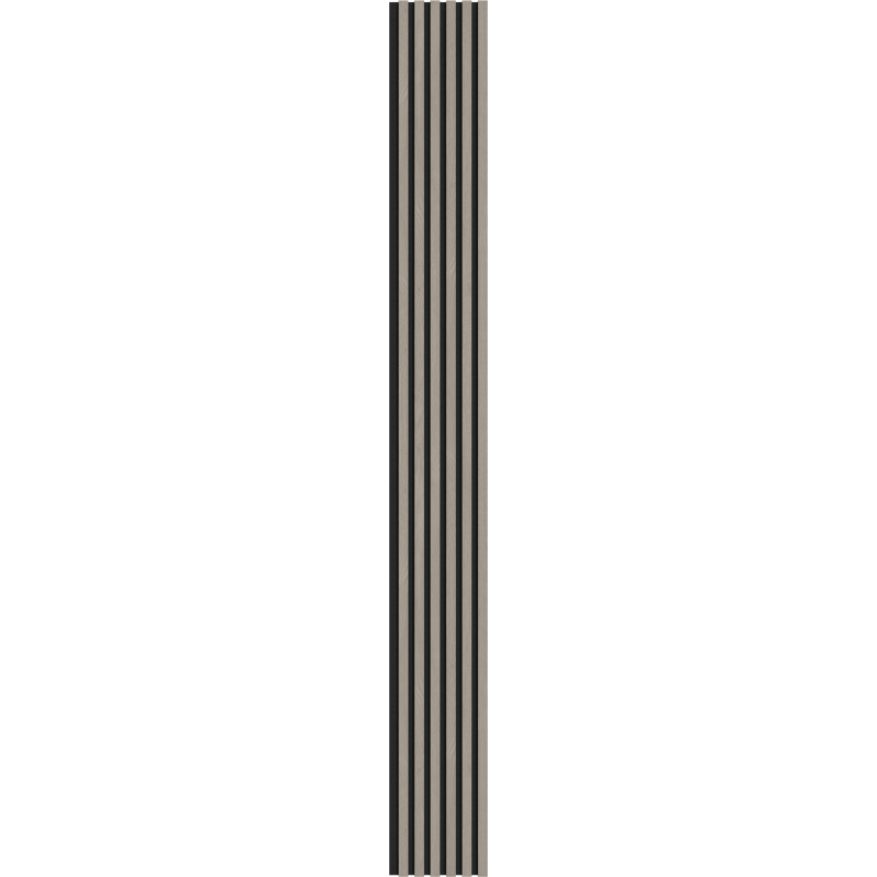 Specifikace produktu: Délka: 275 cm Šířka: 30 cm Tloušťka: 2,3 cm Tloušťka podstavce: 8 mm Tloušťka jedné lamely: 15 mm Šířka jedné lamely: 30 mm Rozteč mezi lamelami: 20 mm Počet lamel: 6 Materiál lamel: MDF páska + technická dýha Podkladový materiál: Plsť Konstrukce lamel: Dub Odstín lamel: Šedý Barva podkladové vrstvy: Černá Způsob montáže: Lepením nebo šrouby Obsahuje materiály zpomalující hoření Mají akustické a zvukově izolační vlastnosti, které účinně snižují nežádoucí zvuky