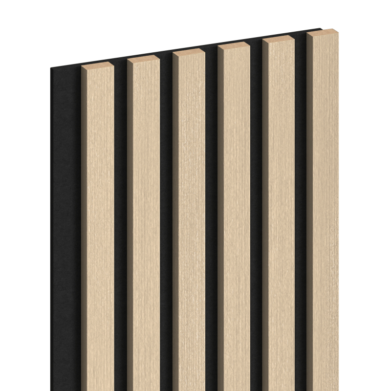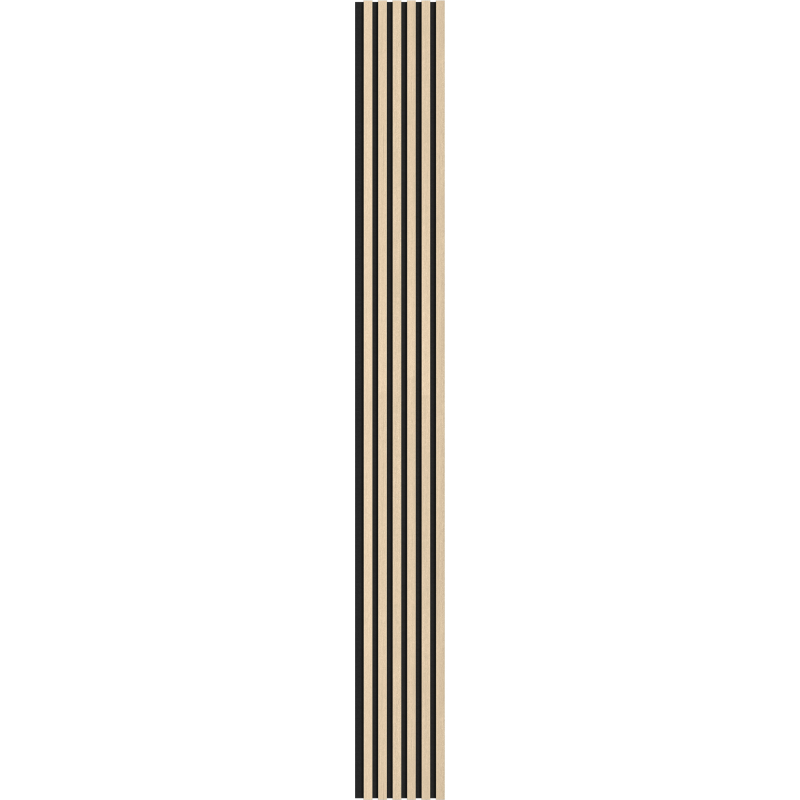 Specifikace produktu: Délka: 275 cm Šířka: 30 cm Tloušťka: 2,3 cm Tloušťka podstavce: 8 mm Tloušťka jedné lamely: 15 mm Šířka jedné lamely: 30 mm Rozteč mezi lamelami: 20 mm Počet lamel: 6 Materiál lamel: MDF páska + technická dýha Podkladový materiál: Plsť Konstrukce lamel: Dub Odstín lamel: Přírodní Barva podkladové vrstvy: Černá Způsob montáže: Lepením nebo šrouby Obsahuje materiály zpomalující hoření Mají akustické a zvukově izolační vlastnosti, které účinně snižují nežádoucí zvuky
