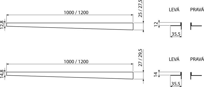 ALCA APZ901M/1200 Nerezová lišta pro spádovanou podlahu, levá
