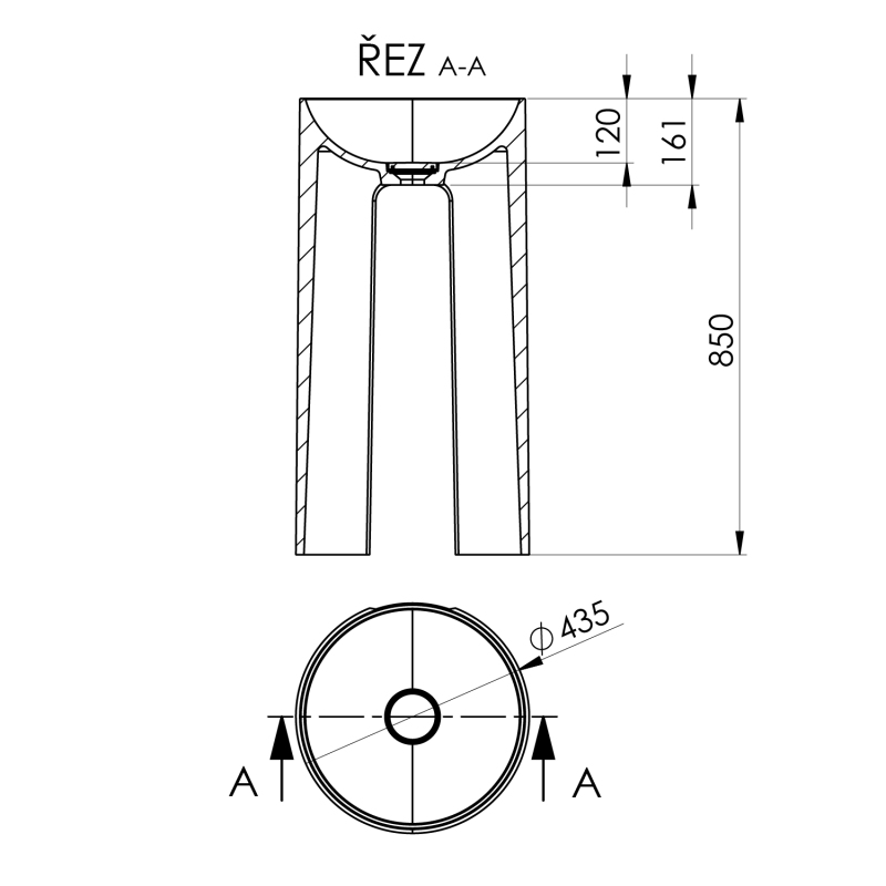 ALTONA umyvadlo volně stojící, litý mramor, průměr 43,5x85cm, kryt výpusti, bílá mat AT435