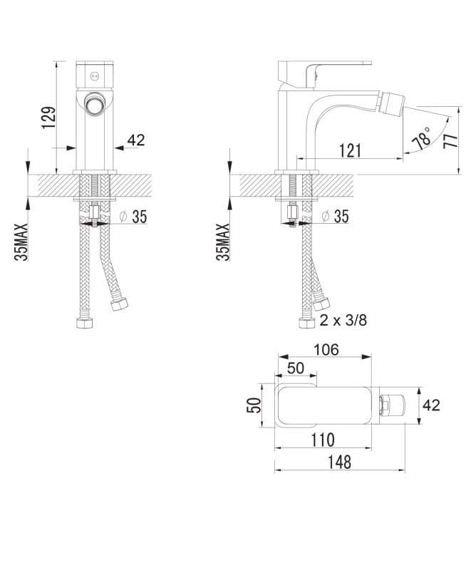 Omnires APURE bidetová baterie, chrom lesk AP2220CR