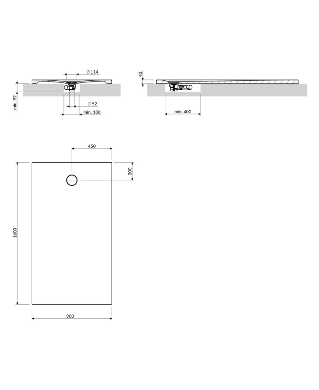 AQUAROCK kompozytowy brodzik prysznicowy antypoślizgowy, 90 x 160 cm, ash grey mat