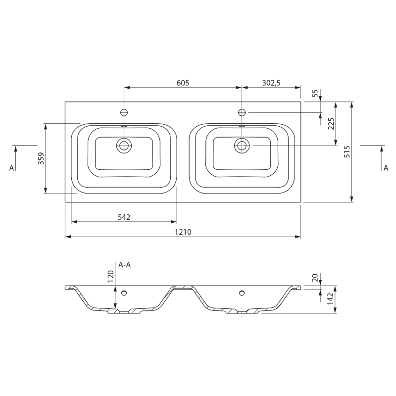 ARECA dvojumyvadlo, litý mramor, 121x51,5cm, bílá
