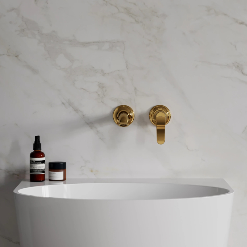 ART DECO bateria umywalkowa podtynkowa, złoty połysk