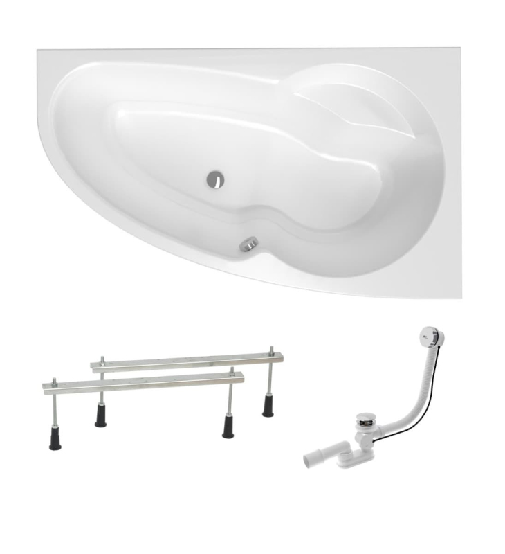 Asymetrická vana vyrobená z akrylátu, tloušťka materiálu je 3,2 mm. Určení vany - pravá orientace. Objem vany je 160 litrů. Balení včetně sifonu a nožiček.