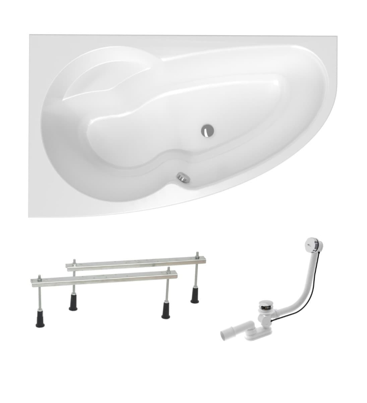 Asymetrická vana vyrobená z akrylátu, tloušťka materiálu je 3,2 mm. Určení vany - levá orientace. Objem vany je 170 litrů. Balení včetně sifonu a nožiček.