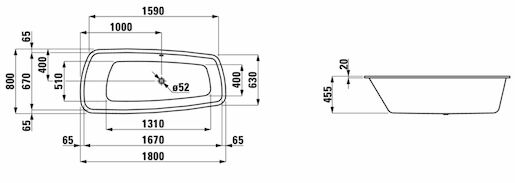Asymetrická vana Laufen Palomba 180x80 cm akrylát H2428000000001