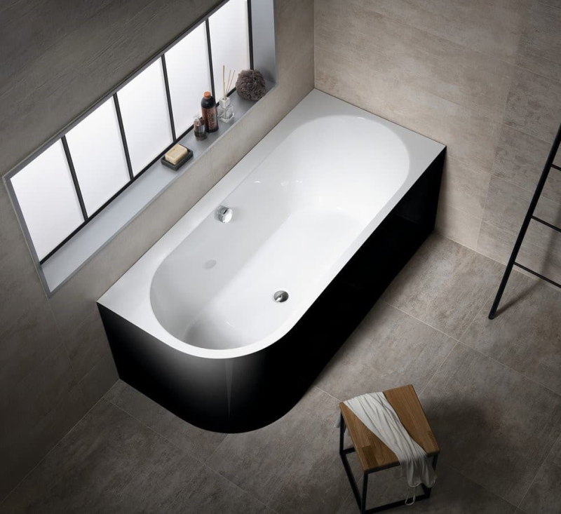Asymetrická vana Polysan ASTRA 160x75 cm akrylát pravá černo/bílá 34611MB