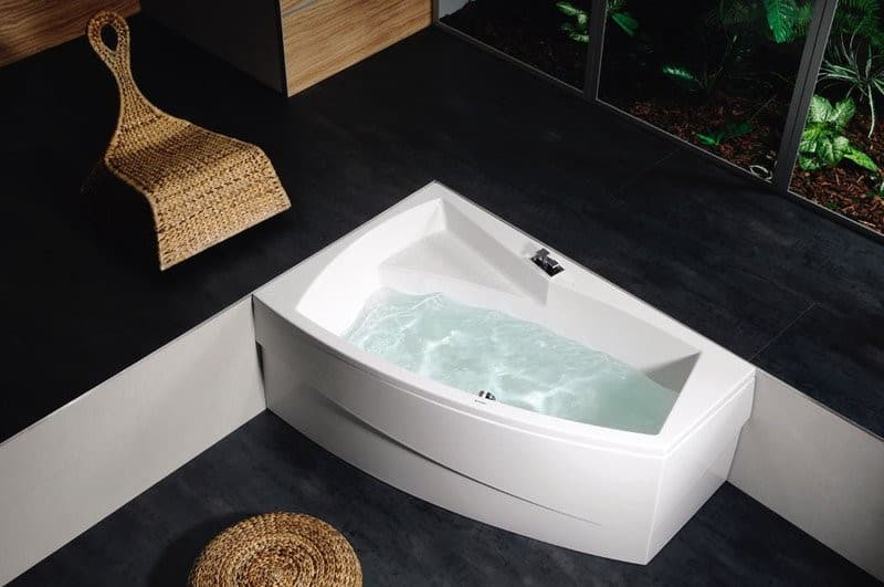 Asymetrická vana z akrylátu. Levá orientace. Objem vany je 255 litrů. Balení bez madla, nožiček a podhlavníku.