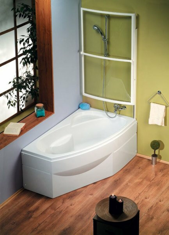 Asymetrická vana z akrylátu. Levá orientace. Objem vany je 235 litrů. Balení bez madla, nožiček a podhlavníku.