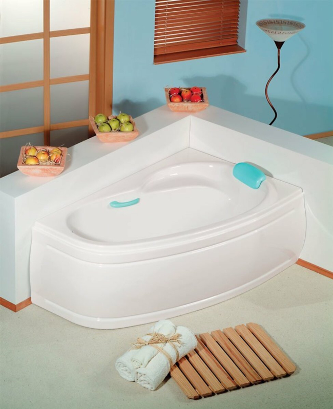 Asymetrická vana z akrylátu. Pravá orientace. Objem vany je 230 litrů. Balení bez madla, nožiček a podhlavníku.