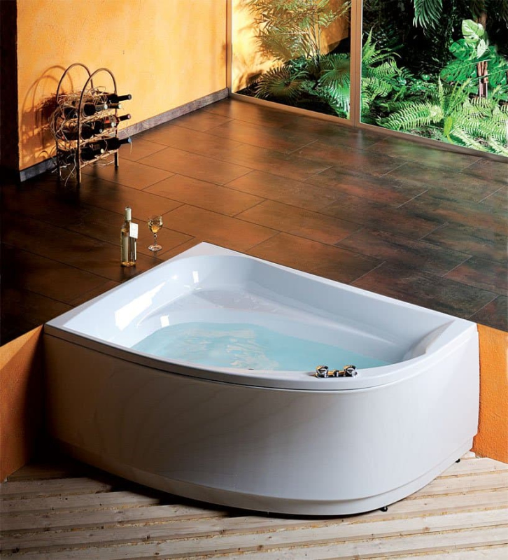 Asymetrická vana z akrylátu. Levá orientace. Objem vany je 310 litrů. Balení bez madla, nožiček a podhlavníku.