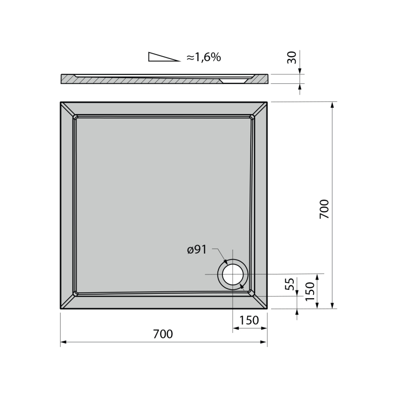 AURA sprchová vanička z litého mramoru, čtverec 70x70cm, bílá