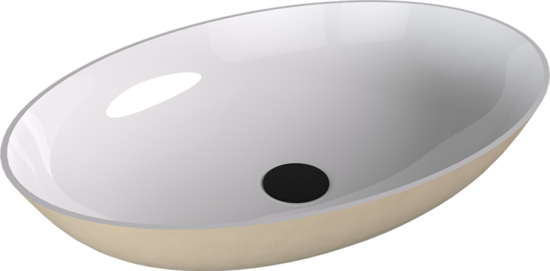BANERA OVAL umyvadlo na desku, litý mramor, 60x40cm, bílá/béžová mat