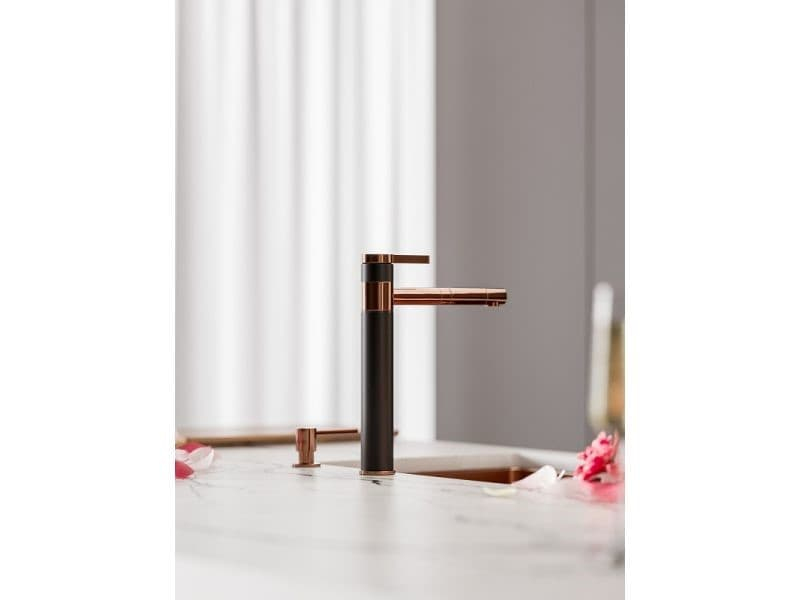 Tlaková dřezová baterie, provedení monarch PVD měď, rozměr 198 x 299 mm, bez sprchy, otočná koncovka