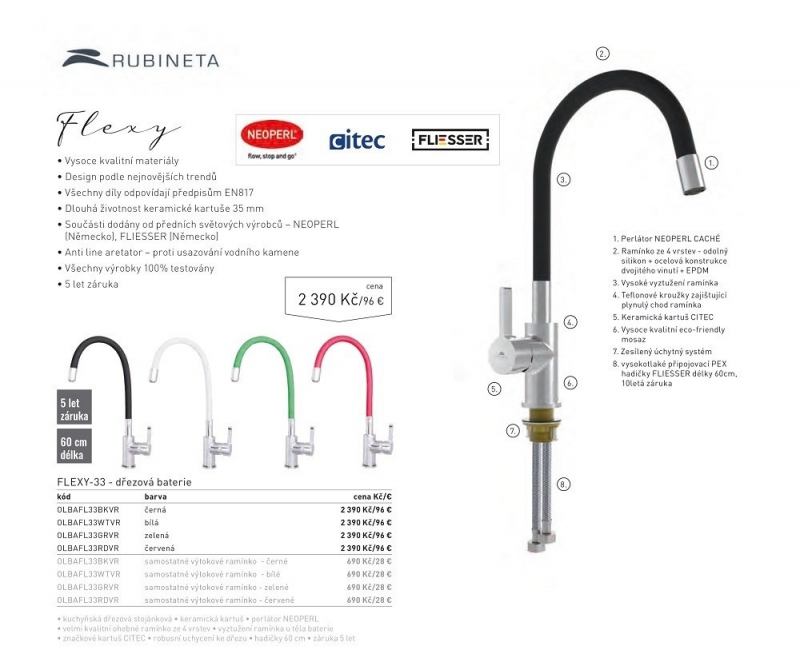 Přednosti dřezové stojánkové vodovodní baterie Olsen Spa FLEXY-33: