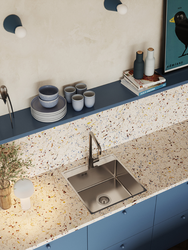 Řada Besos vyniká také mimořádnými povrchovými úpravami, které dodávají kuchyni moderní charakter. Dřezy, které jsou k dispozici v různých barvách, se dobře hodí k různým stylům uspořádání kuchyně a doplňkům, jako jsou baterie nebo domácí spotřebiče.
