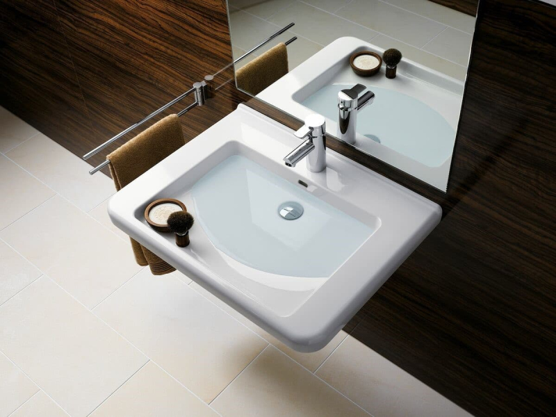 Bezbariérové umyvadlo s otvorem pro baterii, bez přepadu o šířce 65 cm, hloubce 55 cm a výšce 15,5 cm. Balení bez sifonu a baterie.
