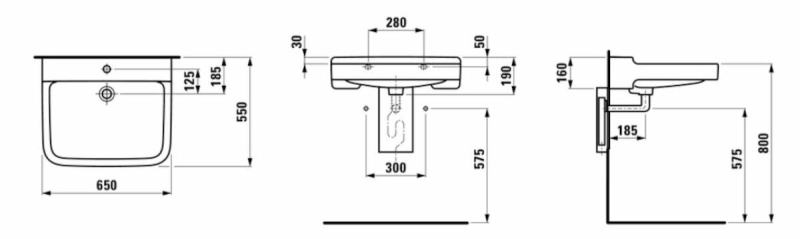Bezbariérové umyvadlo Laufen Pro 65x55 cm otvor pro baterii uprostřed H8119530001041