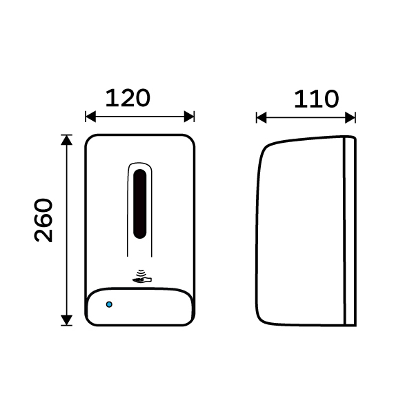 Balení obsahuje 4 šrouby, 4 hmoždinky, klíč k otevírání zásobníku. Výrobek je určený k navrtání i k nalepení. Lepidlo MAMUT ani baterie typu C nejsou součástí výrobku. Lepidlo lze dokoupit pod artiklovým číslem 35003TU. K nalepení bude potřeba 1 tuba lepidla MAMUT. Přístroj je nutné vybavit 4 ks baterií 1,5V typ C. Kvalitní baterie vydrží až 60 tis dávkování. Dobíjecí baterie jsou zakázány! Objem zásobníku 1000ml. Životnost dávkovací pumpičky 300 tis dávek. Objem 1 dávky dezinfekčního roztoku je 0,004 ml. K dávkovači lze dokoupit pumpu na dezinfekční gel/tekuté mýdlo a odkapávač. Odkapávač zabraňuje nechtěnému znečištění v okolí dávkovače. Senzorový dávkovač není uzpůsoben do sprchového koutu pro přímý kontakt s vodou. V přední části dávkovače je umístěna LED kontrolka, která upozorňuje na nízký stav baterie. Nutné dodržet vzdálenost dávkovače od umyvadla min 12cm! Materiál plast ABS-odolný vůči mechanickému poškození. Plast je tuhý, houževnatý, zdravotně nezávadný.