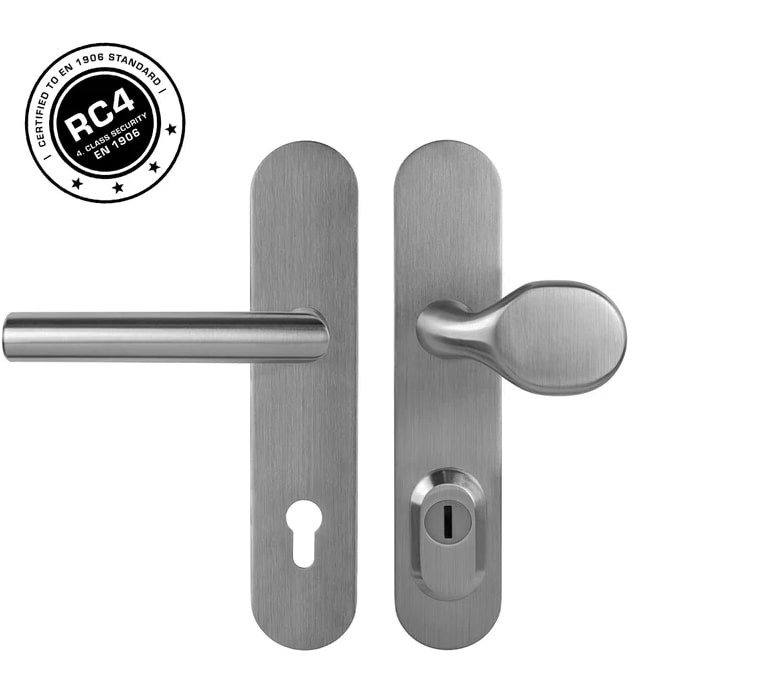Rozteč 90 mm. Bezpečnostní kování SECURO se vyznačuje mimořádnou odolností. Je vyrobeno z nerezové oceli s ohledem na mimořádnou zátěž a odolnost. Robustní konstrukce z nerezové oceli byla navržena tak, aby překonala stávající produkty na trhu. V autorizované zkušebně bylo bezpečnostní kování Securo certifikováno na bezpečnostní třídu 4, a proto má extra vysokou odolnost proti vloupání.