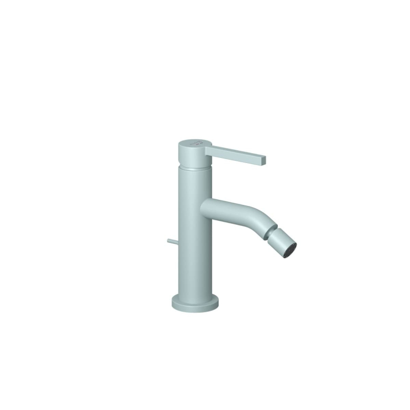 Páková stojánková bidetová baterie s výpustí v barevném provedení matná světle modrá. Průtok je 4,3 litrů/minutu. Výška baterie je 17 cm. Ramínko je ve výšce 8 cm. S matným povrchem.
