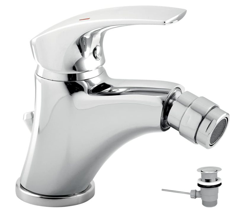 Páková stojánková bidetová baterie s výpustí. V chromovém provedení. Výška baterie je 20 cm.