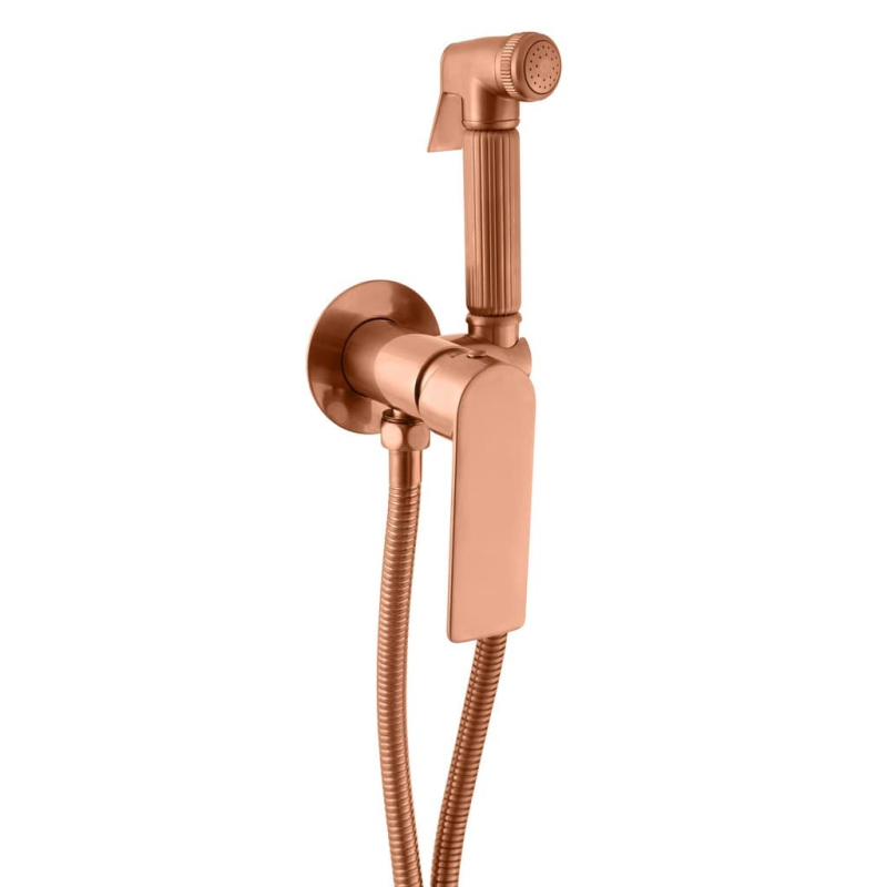 Páková podomítková bidetová baterie včetně podomítkového tělesa v barevném provedení zlatá růžová kartáčovaná. S matným povrchem.