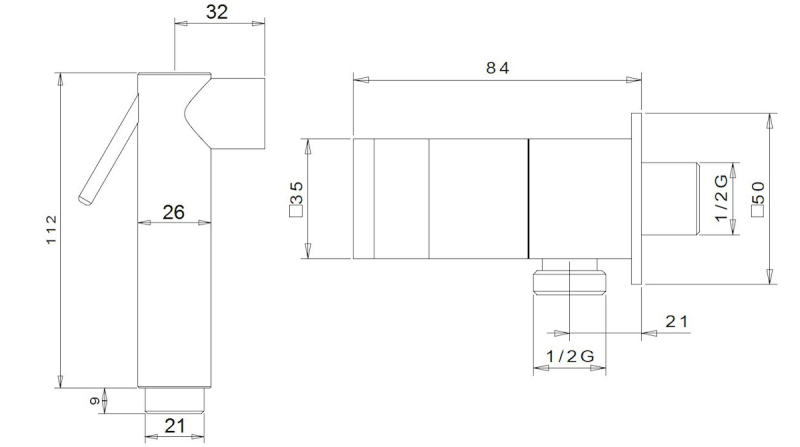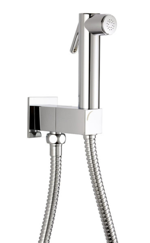 Bidetová sprška s držákem sprchy a sprchovou hadicí s 1 funkcí. V hranatém designu.
