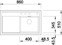 • Možnost dokoupení kompozitní krájecí desky jasan ( č.229421 ) posunovatelné po celé délce dřezu a multifunkčního koše nerez č.223077.