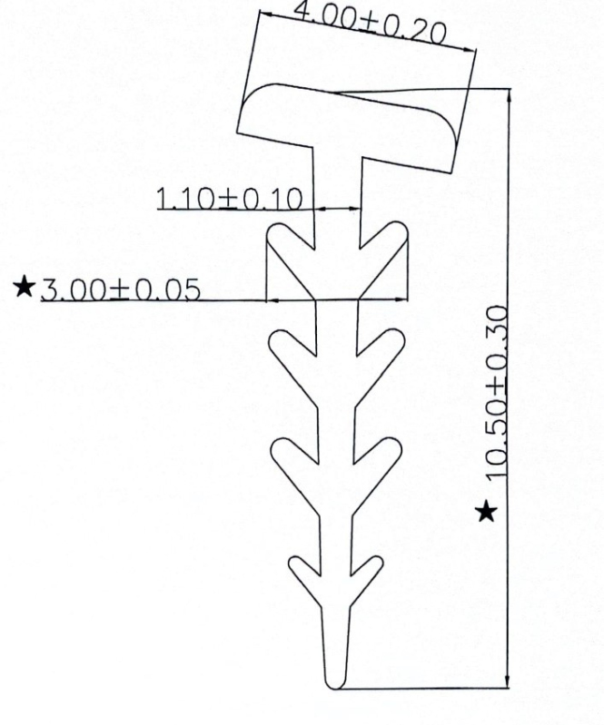 Boční silikonový těsnící profil "stromeček", délka 2 bm