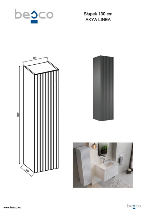 - boční skříňka skříňka: 33 × 30 × 130 cm