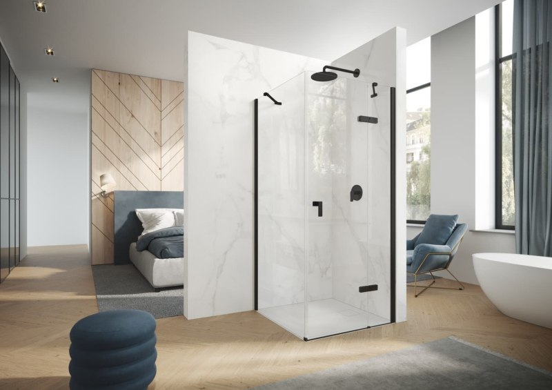 Boční zástěna ke sprchovým dveřím bez vaničky a barvou profilů v černém matném provedení, výplň je z čirého skla bez dekoru. Produkt je opatřen technologií Hüppe Anti-Plaque - povrchová úprava aplikovaná ve výrobě, která usnadňuje čištění a umožňuje jednoduché stékání vody v podobně drobných kapek. Nelze otevřít - pevný systém. Určení - levá i pravá orientace.