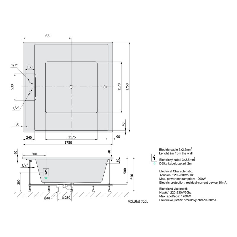 | Rozměr | 175x175x50 cm |