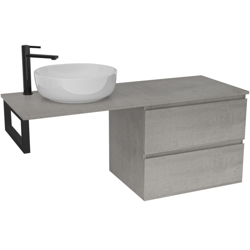 CERANO - Deska pod umyvadlo Navira Slim - 121x46,5x1,8 cm - skříňka Carole 59 cm - betonově šedá - konzole černá