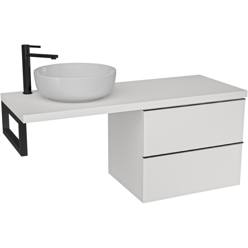 CERANO - Deska pod umyvadlo Navira Pro - 121x46,5x3,6 cm - skříňka Velora 59 cm - bílá matná, černá úchytka - konzole černá