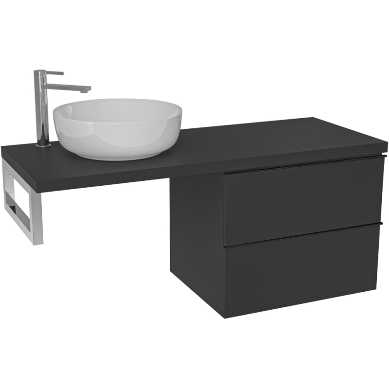 CERANO - Deska pod umyvadlo Navira Pro - 121x46,5x3,6 cm - skříňka Velora 59 cm - černá matná, černá úchytka - konzole chrom