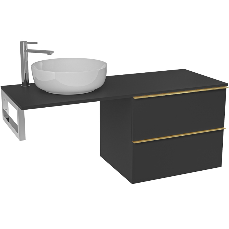 CERANO - Deska pod umyvadlo Navira Slim - 121x46,5x1,8 cm - skříňka Velora 59 cm - černá matná, zlatá úchytka - konzole chrom