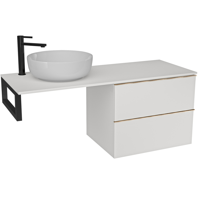 CERANO - Deska pod umyvadlo Navira Slim - 141x46,5x3,6 cm - skříńka Velora 69 cm - bílá matná, zlatá úchytka - konzole černá