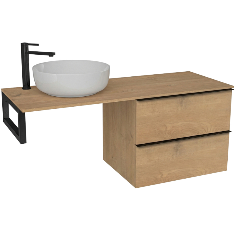 CERANO - Deska pod umyvadlo Navira Slim - 141x46,5x1,8 cm - skříňka Velora 69 cm - dub medový, černá úchytka - konzole černá