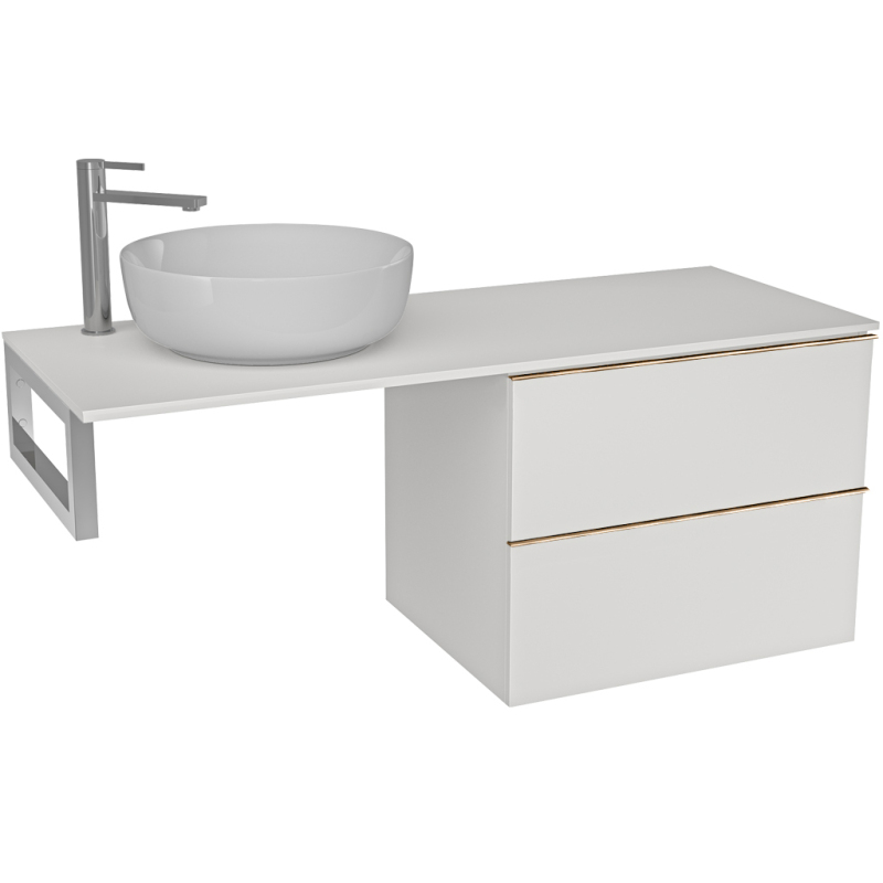 CERANO - Deska pod umyvadlo Navira Slim - 161x46,5x3,6 cm - skříńka Velora 79 cm - bílá matná, zlatá úchytka - konzole chrom
