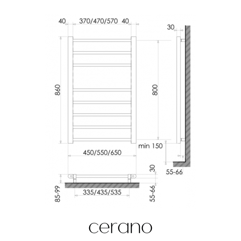 CERANO - Elektrický sušák ručníků Luca - 128 W - bílá lesklá - 860x550 mm