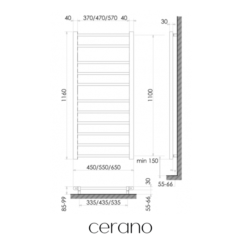 CERANO - Elektrický sušák ručníků Luca, s displejem - 187 W - bílá lesklá - 1160x550 mm