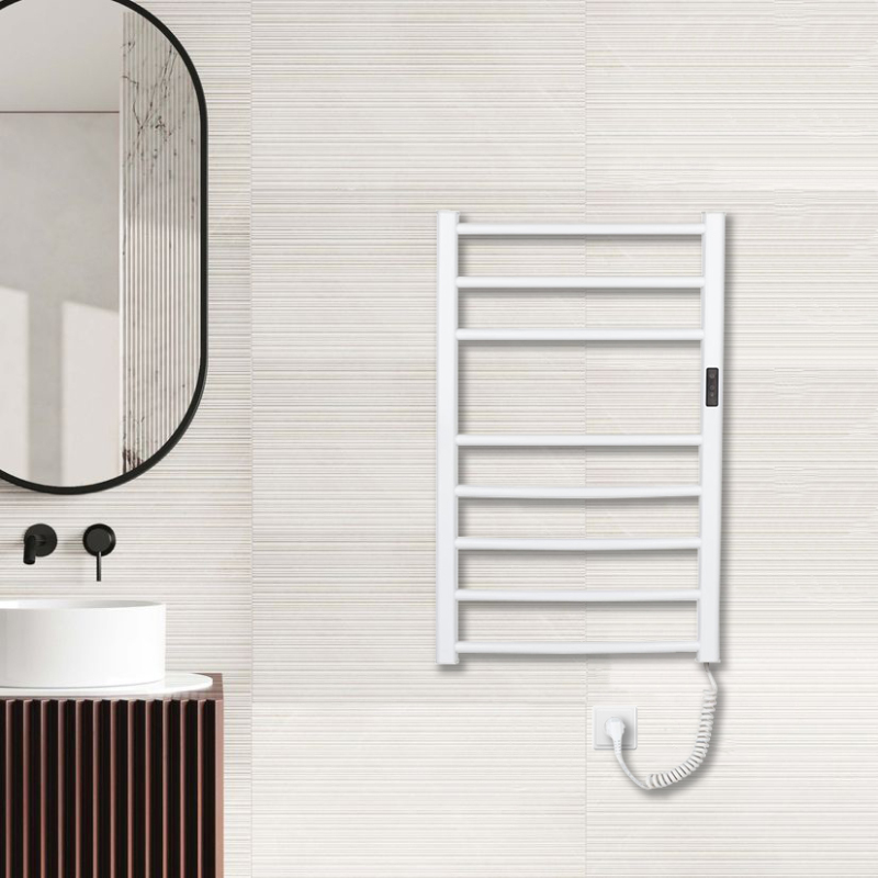 CERANO - Elektrický sušák ručníků Luca, s displejem - 128 W - bílá lesklá - 860x550 mm