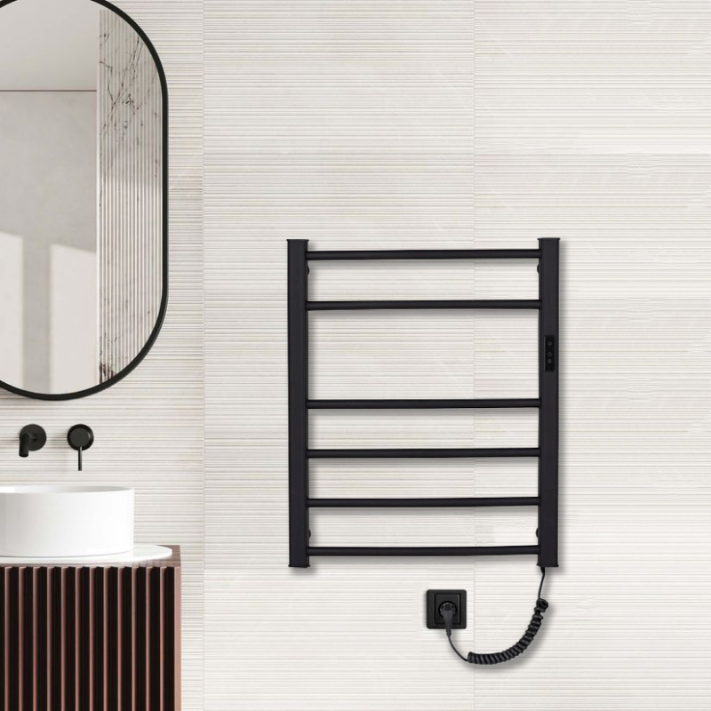 CERANO - Elektrický sušák ručníků Luca, s displejem - 97 W - černá matná - 660x550 mm